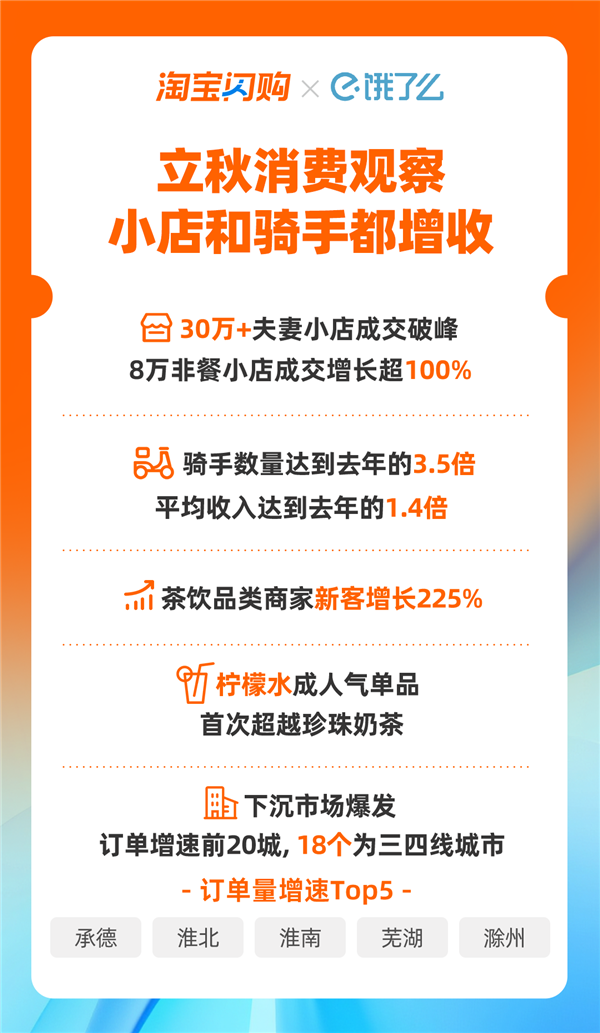 立秋当天饿了么骑手数量达去年同期3.5倍:平均收入增长1.4倍